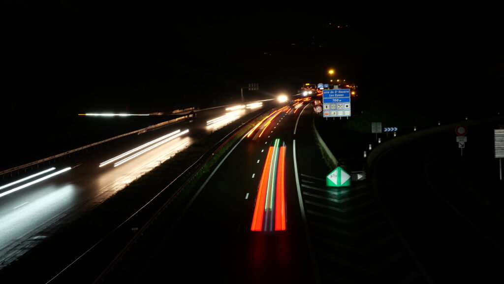 J’ai aussi essayé du light painting en prenant des photos de l’autoroute de nuit.
